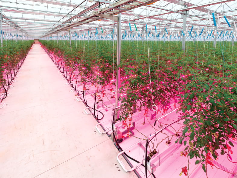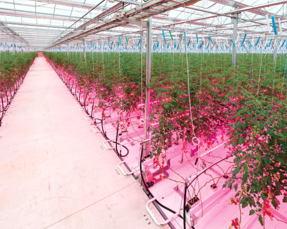 「LEDを導入したトマト栽培ハウス」