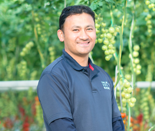 私の母国・ネパールと日本は、広さや気候など、環境面で非常に似ているにも関わらず、農業事情に大きな差があります。ネパールでは、昔ながらの粗放的農業(※)がいまだに行われています。農業用機械や設備が普及しておらず、高軒高ハウスはおろか、ビニールハウスさえまだありません。「ネパールの農業事情を改善したい」と日本にやってきた私は、大学での研究を通して、ネパールの先を行く日本の農業にもまだ課題があることを知りました。そしてその課題に最先端技術で立ち向かい、海外への事業展開も見据えているといううれし野アグリに出会いました。会社の一員になった私は現在、実際の栽培作業をはじめ、データの収集などを担当していますが、大学での研究ではわからない、現場の経験に毎日とても充実しています。うれし野アグリでは栽培設備から栽培管理技術、トマト自体の研究まで、あらゆるアプローチで新しい農業に取り組んでいます。これらの取り組みをセットにして海外に展開できれば、ネパールをはじめ、発展途上国の農業事情の改善にも大きく貢献できるはず。うれし野アグリには、私の夢もつまっています。※粗放的(そほうてき)農業…ほとんど世話を焼かないような農法。収穫量は少なく、品質も良くないことが多いほか、栽培後の農地が弱ってしまい、持続性が低いなどの課題がある。